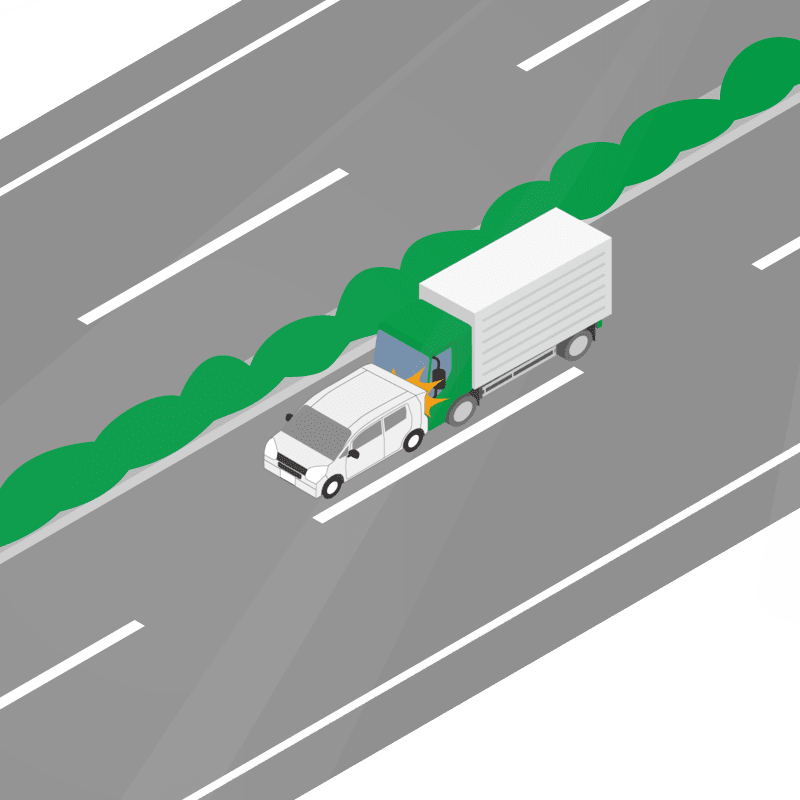 ・イラストに使用している各要素(車、背景、車、天候、信号、衝突地点など)は、代表的なイメージをイラスト化しており、色や形状等含め現実の事故の状況とは異なります。あくまで、事故のイメージとして参考までにご活用ください。