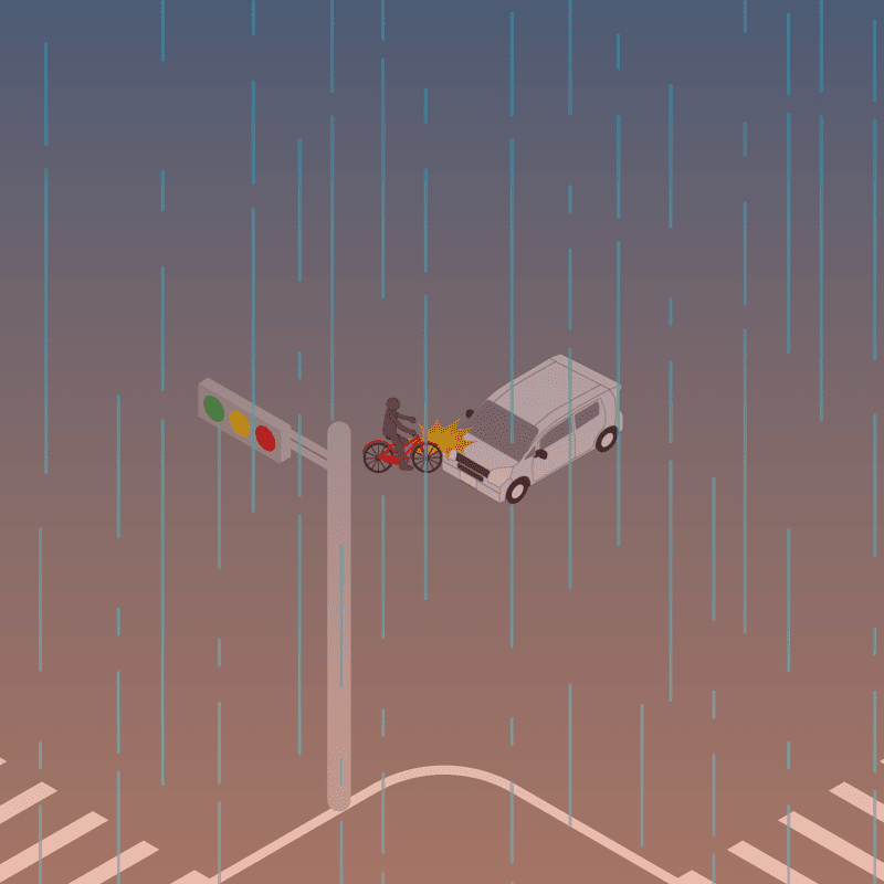 ・イラストに使用している各要素(車、背景、車、天候、信号、衝突地点など)は、代表的なイメージをイラスト化しており、色や形状等含め現実の事故の状況とは異なります。あくまで、事故のイメージとして参考までにご活用ください。