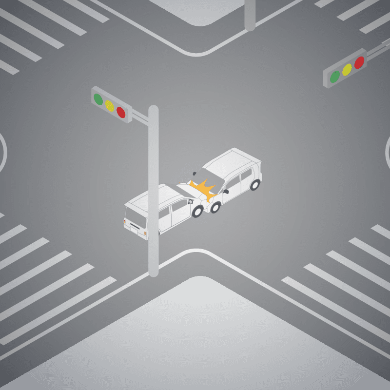 ・イラストに使用している各要素(車、背景、車、天候、信号、衝突地点など)は、代表的なイメージをイラスト化しており、色や形状等含め現実の事故の状況とは異なります。あくまで、事故のイメージとして参考までにご活用ください。