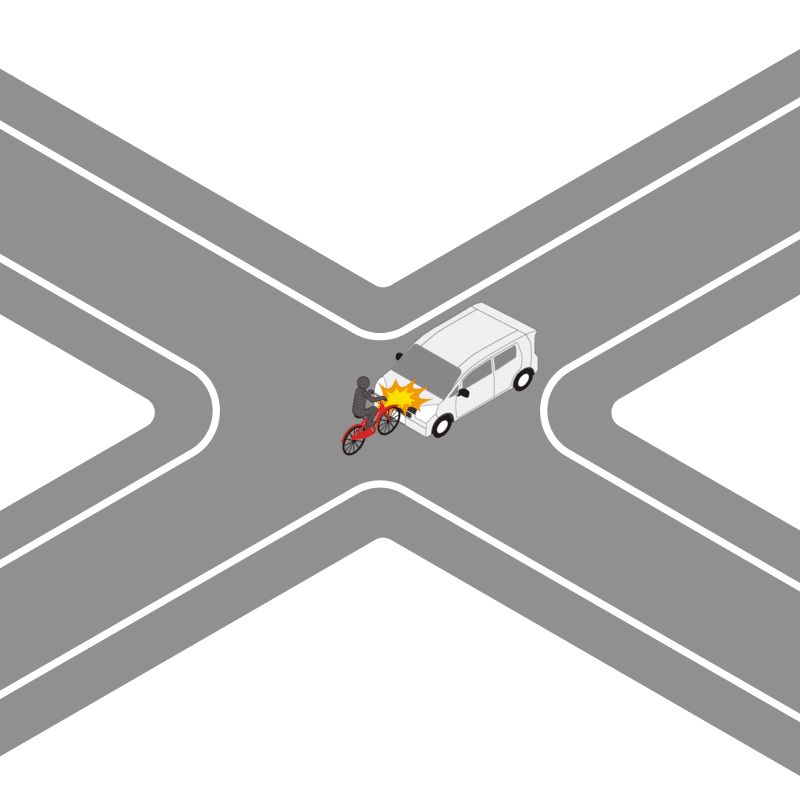 ・イラストに使用している各要素(車、背景、車、天候、信号、衝突地点など)は、代表的なイメージをイラスト化しており、色や形状等含め現実の事故の状況とは異なります。あくまで、事故のイメージとして参考までにご活用ください。