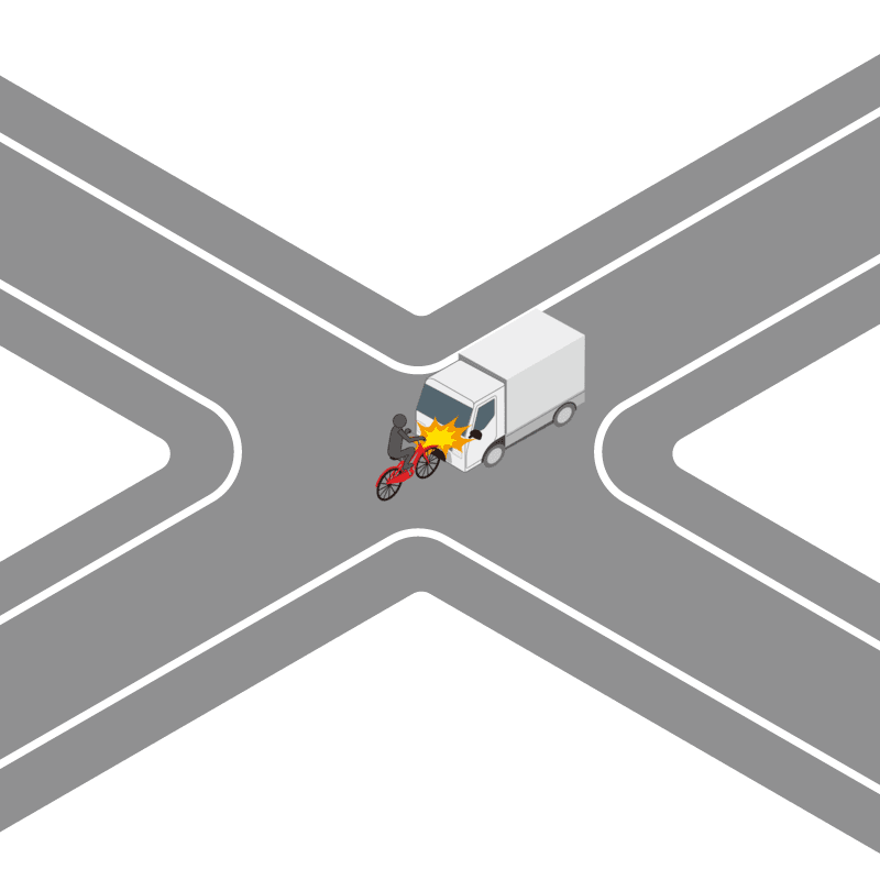 ・イラストに使用している各要素(車、背景、車、天候、信号、衝突地点など)は、代表的なイメージをイラスト化しており、色や形状等含め現実の事故の状況とは異なります。あくまで、事故のイメージとして参考までにご活用ください。