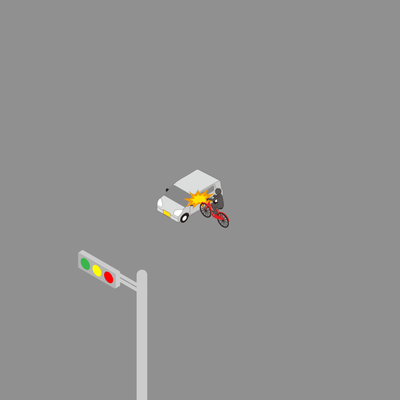 ・イラストに使用している各要素(車、背景、車、天候、信号、衝突地点など)は、代表的なイメージをイラスト化しており、色や形状等含め現実の事故の状況とは異なります。あくまで、事故のイメージとして参考までにご活用ください。