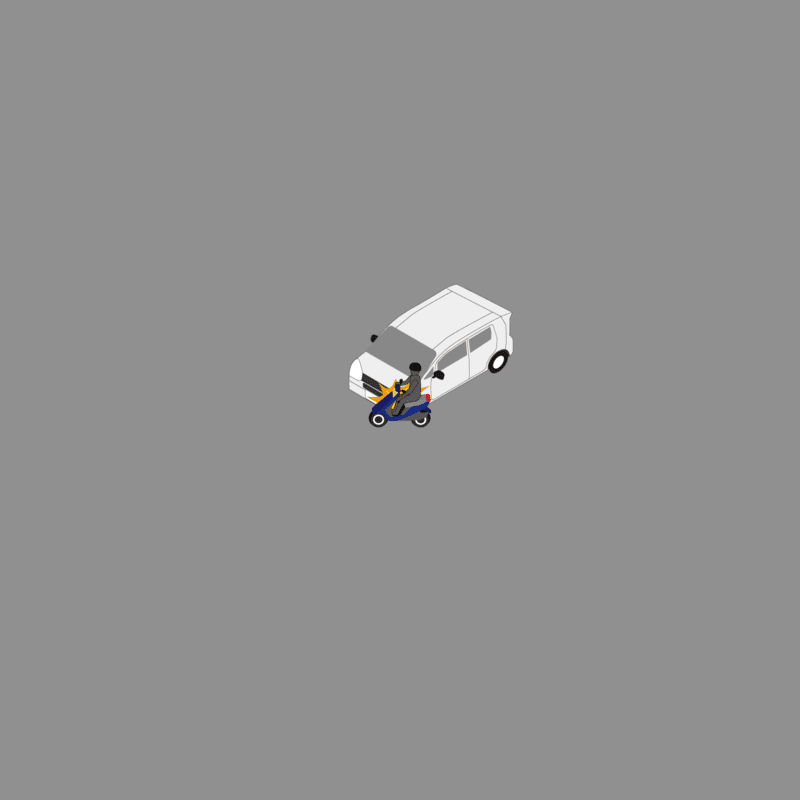 ・イラストに使用している各要素(車、背景、車、天候、信号、衝突地点など)は、代表的なイメージをイラスト化しており、色や形状等含め現実の事故の状況とは異なります。あくまで、事故のイメージとして参考までにご活用ください。