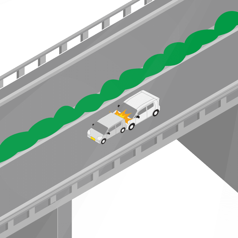 ・イラストに使用している各要素(車、背景、車、天候、信号、衝突地点など)は、代表的なイメージをイラスト化しており、色や形状等含め現実の事故の状況とは異なります。あくまで、事故のイメージとして参考までにご活用ください。