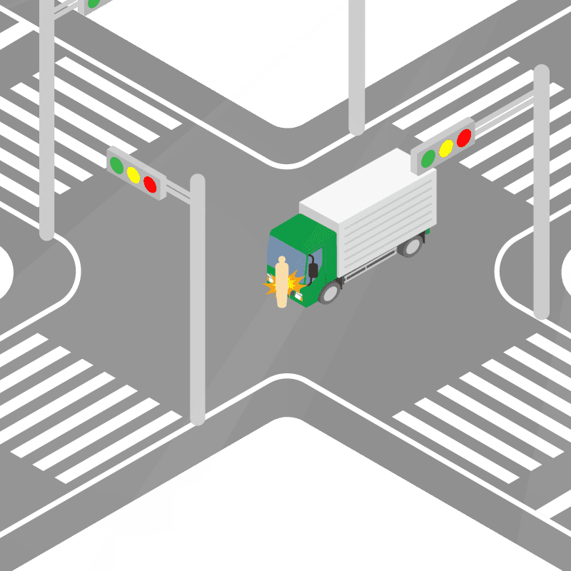 ・イラストに使用している各要素(車、背景、車、天候、信号、衝突地点など)は、代表的なイメージをイラスト化しており、色や形状等含め現実の事故の状況とは異なります。あくまで、事故のイメージとして参考までにご活用ください。