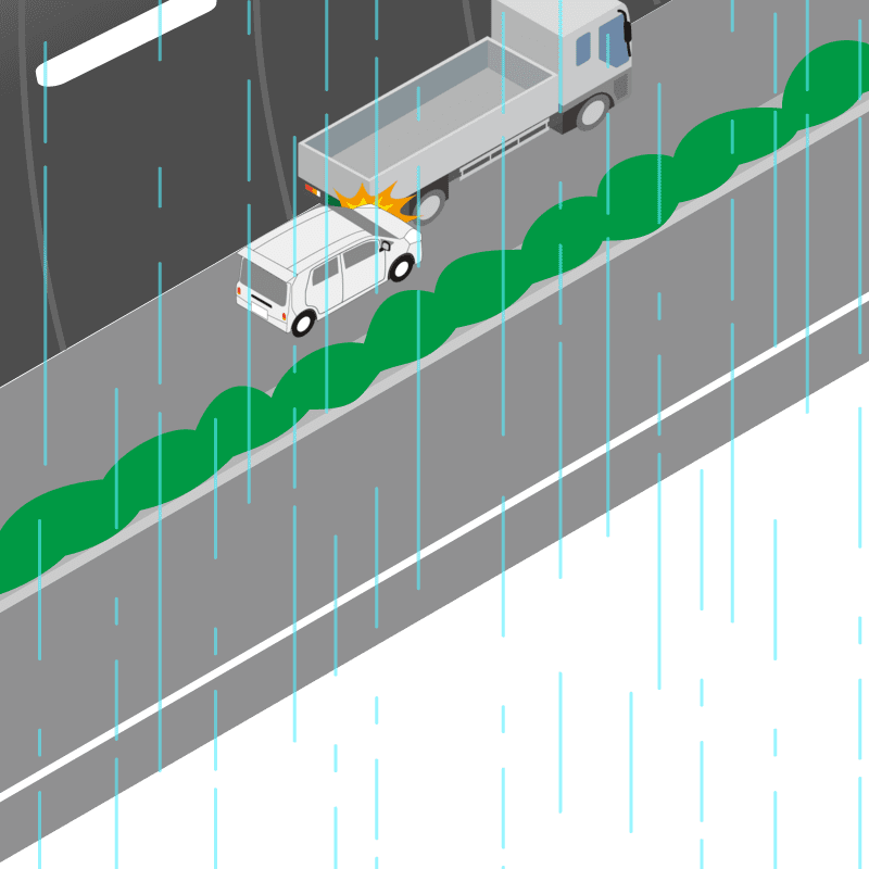・イラストに使用している各要素(車、背景、車、天候、信号、衝突地点など)は、代表的なイメージをイラスト化しており、色や形状等含め現実の事故の状況とは異なります。あくまで、事故のイメージとして参考までにご活用ください。