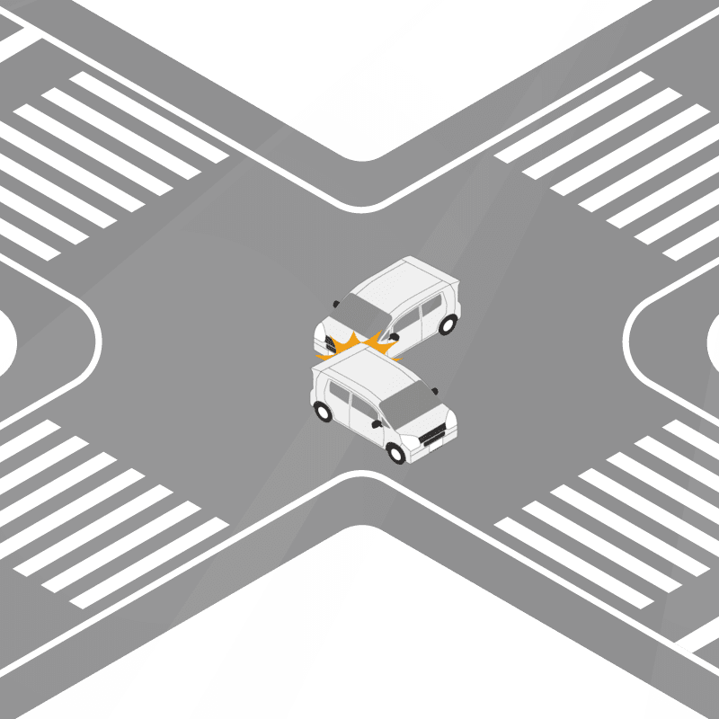 ・イラストに使用している各要素(車、背景、車、天候、信号、衝突地点など)は、代表的なイメージをイラスト化しており、色や形状等含め現実の事故の状況とは異なります。あくまで、事故のイメージとして参考までにご活用ください。