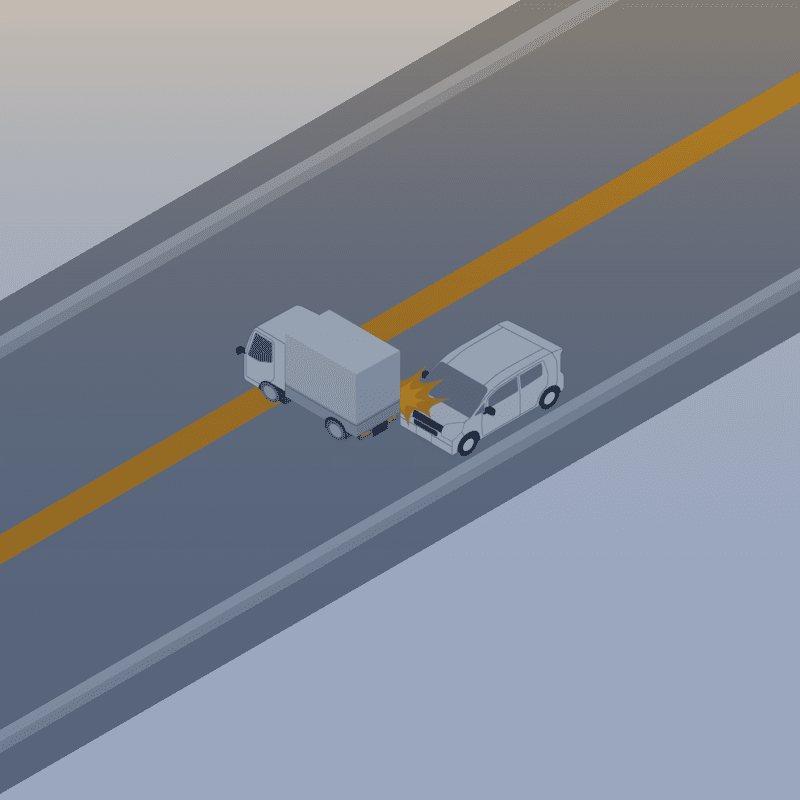 ・イラストに使用している各要素(車、背景、車、天候、信号、衝突地点など)は、代表的なイメージをイラスト化しており、色や形状等含め現実の事故の状況とは異なります。あくまで、事故のイメージとして参考までにご活用ください。