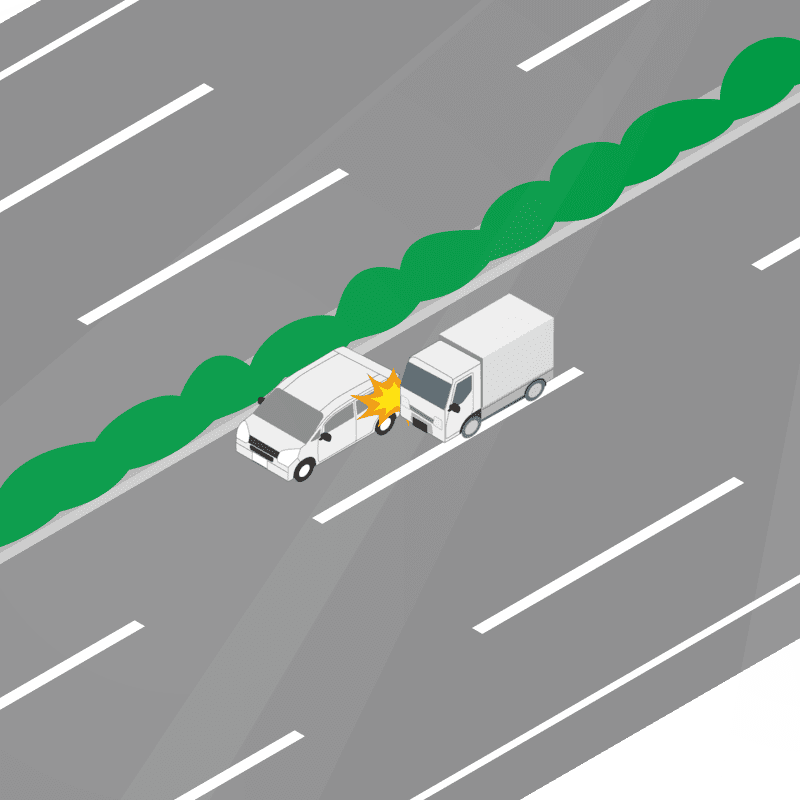 ・イラストに使用している各要素(車、背景、車、天候、信号、衝突地点など)は、代表的なイメージをイラスト化しており、色や形状等含め現実の事故の状況とは異なります。あくまで、事故のイメージとして参考までにご活用ください。