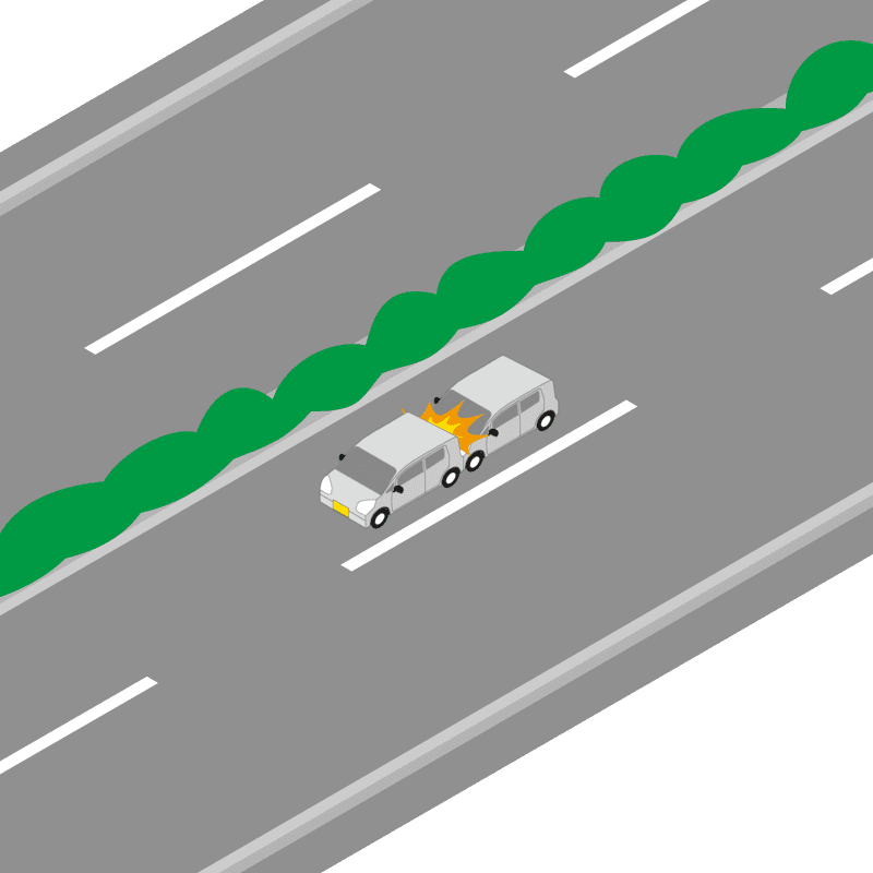 ・イラストに使用している各要素(車、背景、車、天候、信号、衝突地点など)は、代表的なイメージをイラスト化しており、色や形状等含め現実の事故の状況とは異なります。あくまで、事故のイメージとして参考までにご活用ください。