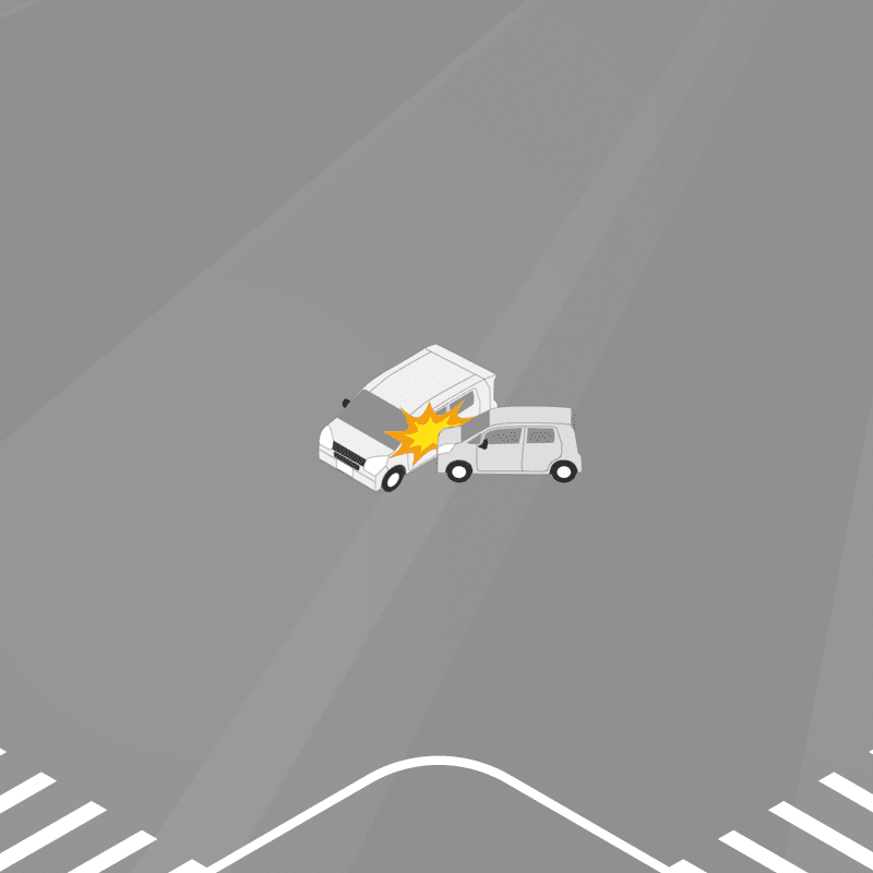 ・イラストに使用している各要素(車、背景、車、天候、信号、衝突地点など)は、代表的なイメージをイラスト化しており、色や形状等含め現実の事故の状況とは異なります。あくまで、事故のイメージとして参考までにご活用ください。
