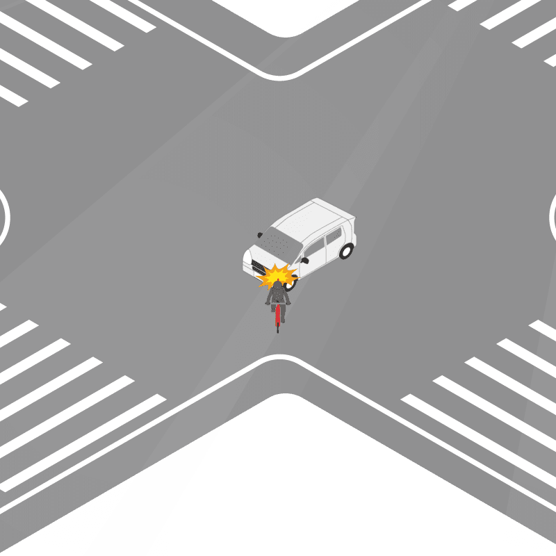 ・イラストに使用している各要素(車、背景、車、天候、信号、衝突地点など)は、代表的なイメージをイラスト化しており、色や形状等含め現実の事故の状況とは異なります。あくまで、事故のイメージとして参考までにご活用ください。