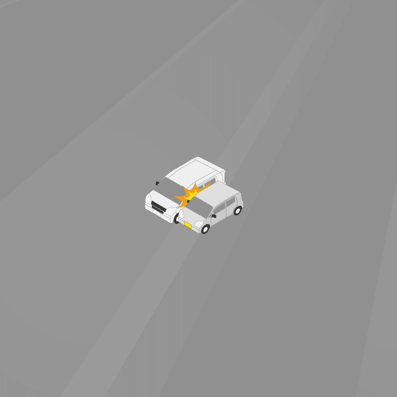 ・イラストに使用している各要素(車、背景、車、天候、信号、衝突地点など)は、代表的なイメージをイラスト化しており、色や形状等含め現実の事故の状況とは異なります。あくまで、事故のイメージとして参考までにご活用ください。