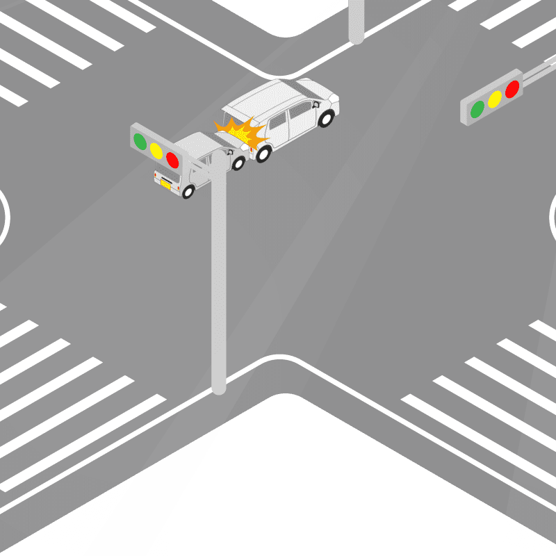 ・イラストに使用している各要素(車、背景、車、天候、信号、衝突地点など)は、代表的なイメージをイラスト化しており、色や形状等含め現実の事故の状況とは異なります。あくまで、事故のイメージとして参考までにご活用ください。