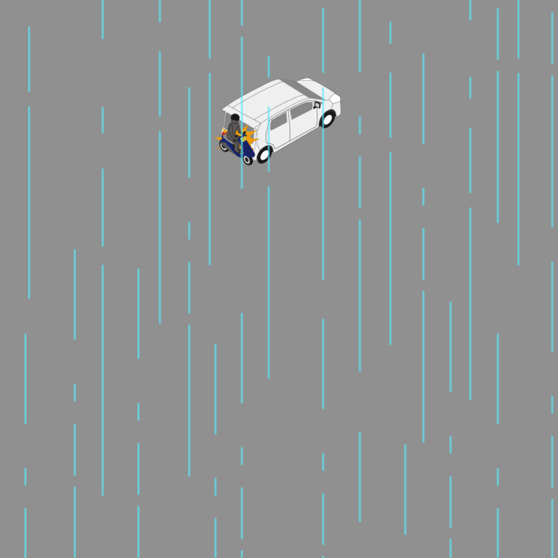・イラストに使用している各要素(車、背景、車、天候、信号、衝突地点など)は、代表的なイメージをイラスト化しており、色や形状等含め現実の事故の状況とは異なります。あくまで、事故のイメージとして参考までにご活用ください。