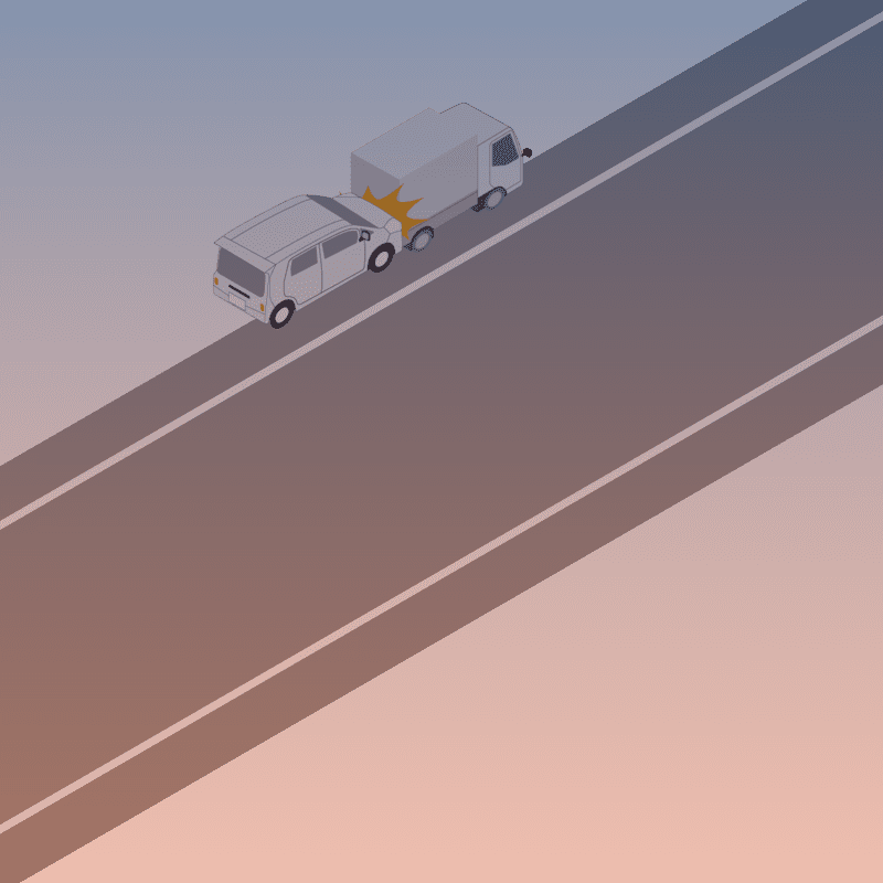 ・イラストに使用している各要素(車、背景、車、天候、信号、衝突地点など)は、代表的なイメージをイラスト化しており、色や形状等含め現実の事故の状況とは異なります。あくまで、事故のイメージとして参考までにご活用ください。