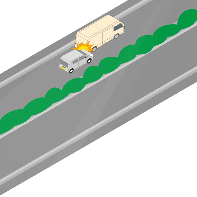 ・イラストに使用している各要素(車、背景、車、天候、信号、衝突地点など)は、代表的なイメージをイラスト化しており、色や形状等含め現実の事故の状況とは異なります。あくまで、事故のイメージとして参考までにご活用ください。