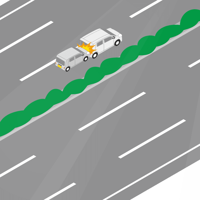 ・イラストに使用している各要素(車、背景、車、天候、信号、衝突地点など)は、代表的なイメージをイラスト化しており、色や形状等含め現実の事故の状況とは異なります。あくまで、事故のイメージとして参考までにご活用ください。