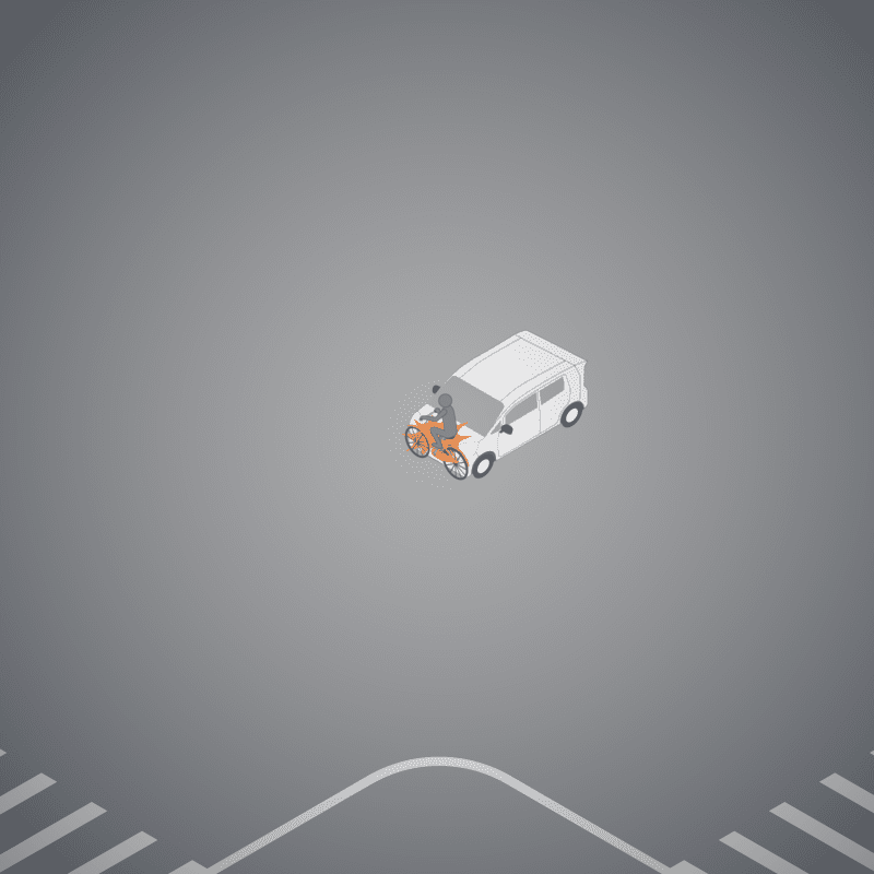 ・イラストに使用している各要素(車、背景、車、天候、信号、衝突地点など)は、代表的なイメージをイラスト化しており、色や形状等含め現実の事故の状況とは異なります。あくまで、事故のイメージとして参考までにご活用ください。