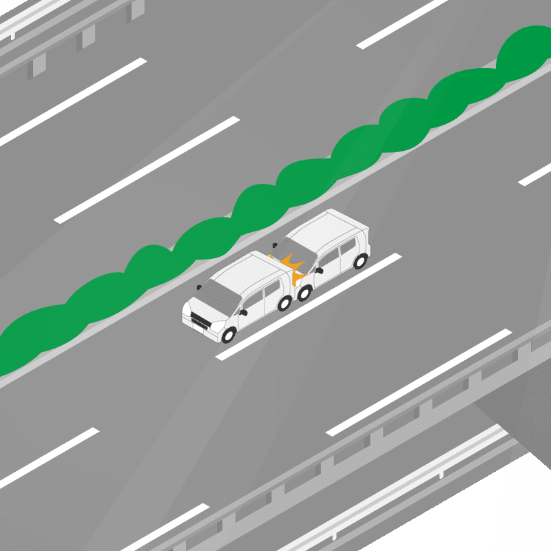・イラストに使用している各要素(車、背景、車、天候、信号、衝突地点など)は、代表的なイメージをイラスト化しており、色や形状等含め現実の事故の状況とは異なります。あくまで、事故のイメージとして参考までにご活用ください。