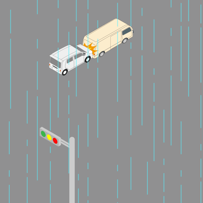 ・イラストに使用している各要素(車、背景、車、天候、信号、衝突地点など)は、代表的なイメージをイラスト化しており、色や形状等含め現実の事故の状況とは異なります。あくまで、事故のイメージとして参考までにご活用ください。