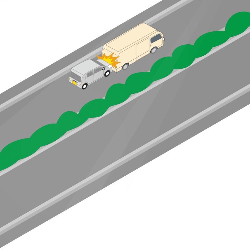 ・イラストに使用している各要素(車、背景、車、天候、信号、衝突地点など)は、代表的なイメージをイラスト化しており、色や形状等含め現実の事故の状況とは異なります。あくまで、事故のイメージとして参考までにご活用ください。