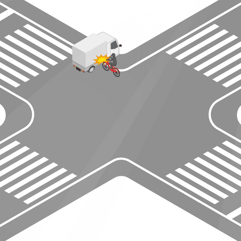 ・イラストに使用している各要素(車、背景、車、天候、信号、衝突地点など)は、代表的なイメージをイラスト化しており、色や形状等含め現実の事故の状況とは異なります。あくまで、事故のイメージとして参考までにご活用ください。