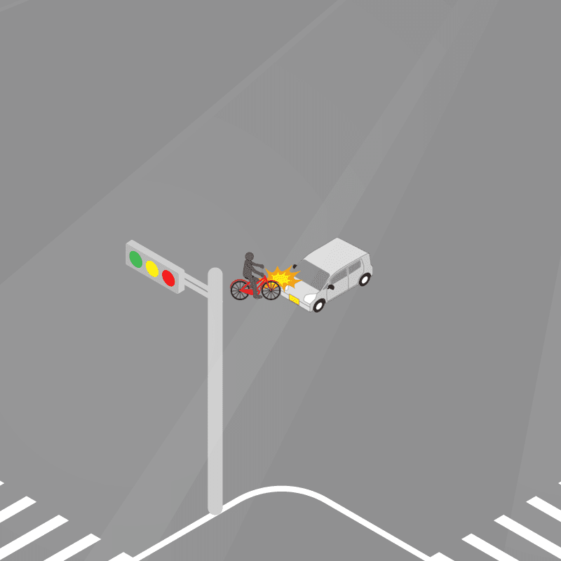 ・イラストに使用している各要素(車、背景、車、天候、信号、衝突地点など)は、代表的なイメージをイラスト化しており、色や形状等含め現実の事故の状況とは異なります。あくまで、事故のイメージとして参考までにご活用ください。