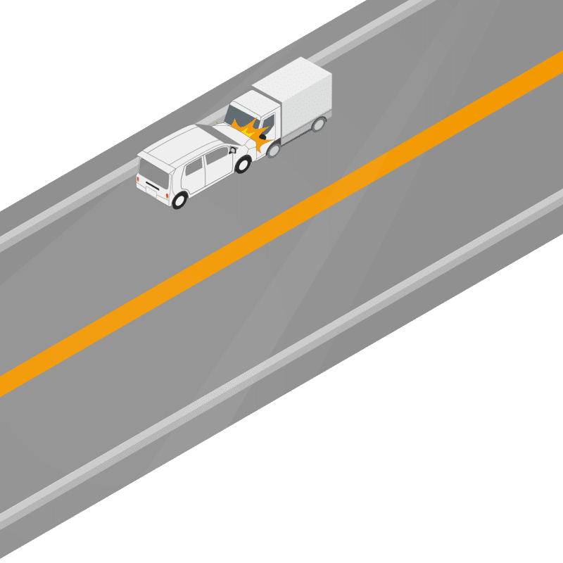 ・イラストに使用している各要素(車、背景、車、天候、信号、衝突地点など)は、代表的なイメージをイラスト化しており、色や形状等含め現実の事故の状況とは異なります。あくまで、事故のイメージとして参考までにご活用ください。