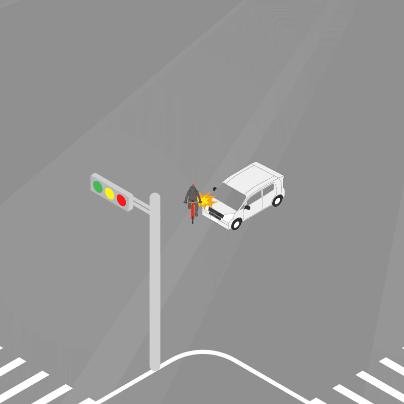 ・イラストに使用している各要素(車、背景、車、天候、信号、衝突地点など)は、代表的なイメージをイラスト化しており、色や形状等含め現実の事故の状況とは異なります。あくまで、事故のイメージとして参考までにご活用ください。