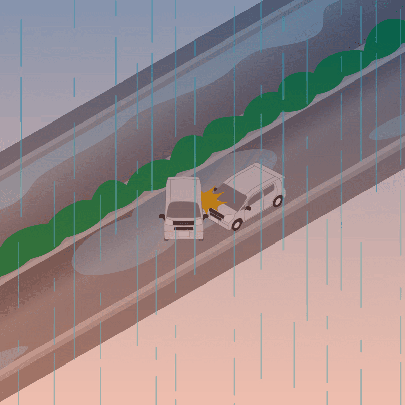 ・イラストに使用している各要素(車、背景、車、天候、信号、衝突地点など)は、代表的なイメージをイラスト化しており、色や形状等含め現実の事故の状況とは異なります。あくまで、事故のイメージとして参考までにご活用ください。