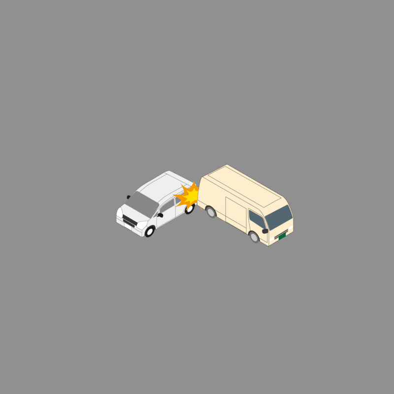 ・イラストに使用している各要素(車、背景、車、天候、信号、衝突地点など)は、代表的なイメージをイラスト化しており、色や形状等含め現実の事故の状況とは異なります。あくまで、事故のイメージとして参考までにご活用ください。