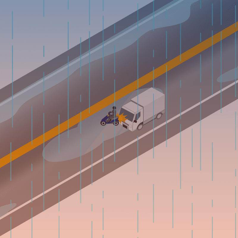 ・イラストに使用している各要素(車、背景、車、天候、信号、衝突地点など)は、代表的なイメージをイラスト化しており、色や形状等含め現実の事故の状況とは異なります。あくまで、事故のイメージとして参考までにご活用ください。