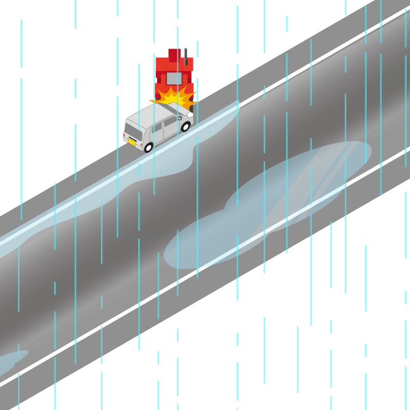 ・イラストに使用している各要素(車、背景、車、天候、信号、衝突地点など)は、代表的なイメージをイラスト化しており、色や形状等含め現実の事故の状況とは異なります。あくまで、事故のイメージとして参考までにご活用ください。