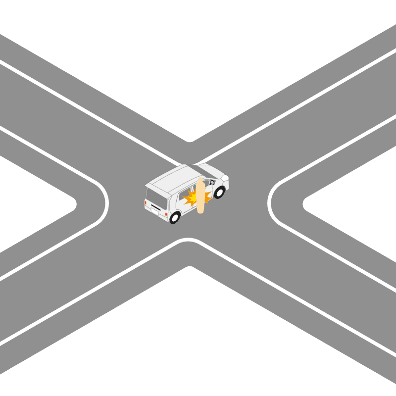 ・イラストに使用している各要素(車、背景、車、天候、信号、衝突地点など)は、代表的なイメージをイラスト化しており、色や形状等含め現実の事故の状況とは異なります。あくまで、事故のイメージとして参考までにご活用ください。
