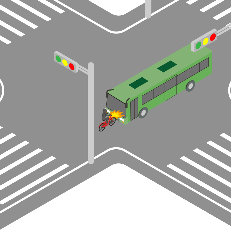 ・イラストに使用している各要素(車、背景、車、天候、信号、衝突地点など)は、代表的なイメージをイラスト化しており、色や形状等含め現実の事故の状況とは異なります。あくまで、事故のイメージとして参考までにご活用ください。