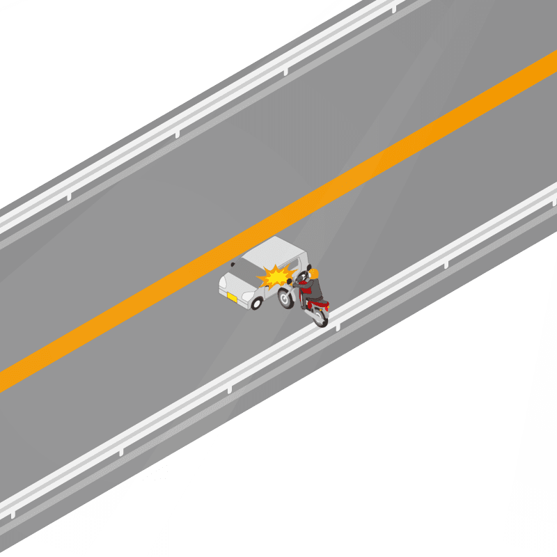 ・イラストに使用している各要素(車、背景、車、天候、信号、衝突地点など)は、代表的なイメージをイラスト化しており、色や形状等含め現実の事故の状況とは異なります。あくまで、事故のイメージとして参考までにご活用ください。