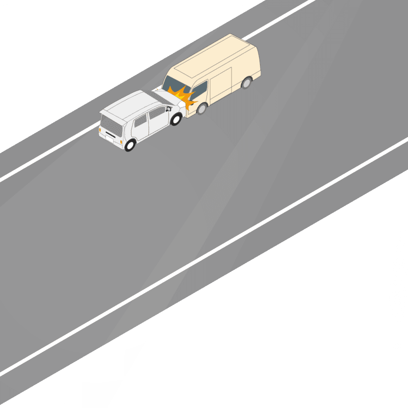 ・イラストに使用している各要素(車、背景、車、天候、信号、衝突地点など)は、代表的なイメージをイラスト化しており、色や形状等含め現実の事故の状況とは異なります。あくまで、事故のイメージとして参考までにご活用ください。