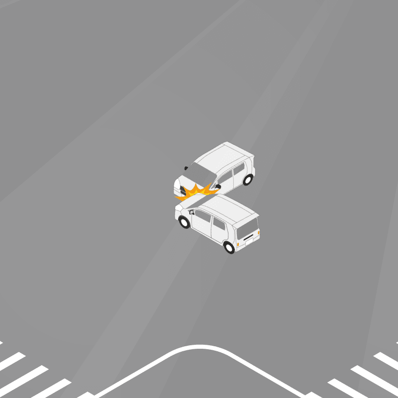 ・イラストに使用している各要素(車、背景、車、天候、信号、衝突地点など)は、代表的なイメージをイラスト化しており、色や形状等含め現実の事故の状況とは異なります。あくまで、事故のイメージとして参考までにご活用ください。