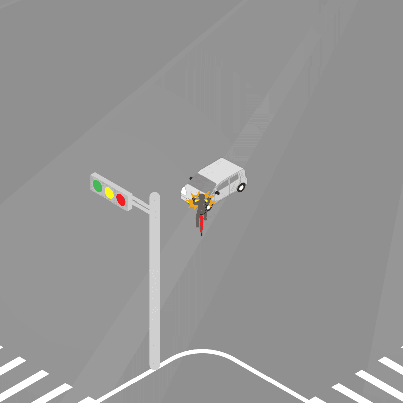 ・イラストに使用している各要素(車、背景、車、天候、信号、衝突地点など)は、代表的なイメージをイラスト化しており、色や形状等含め現実の事故の状況とは異なります。あくまで、事故のイメージとして参考までにご活用ください。