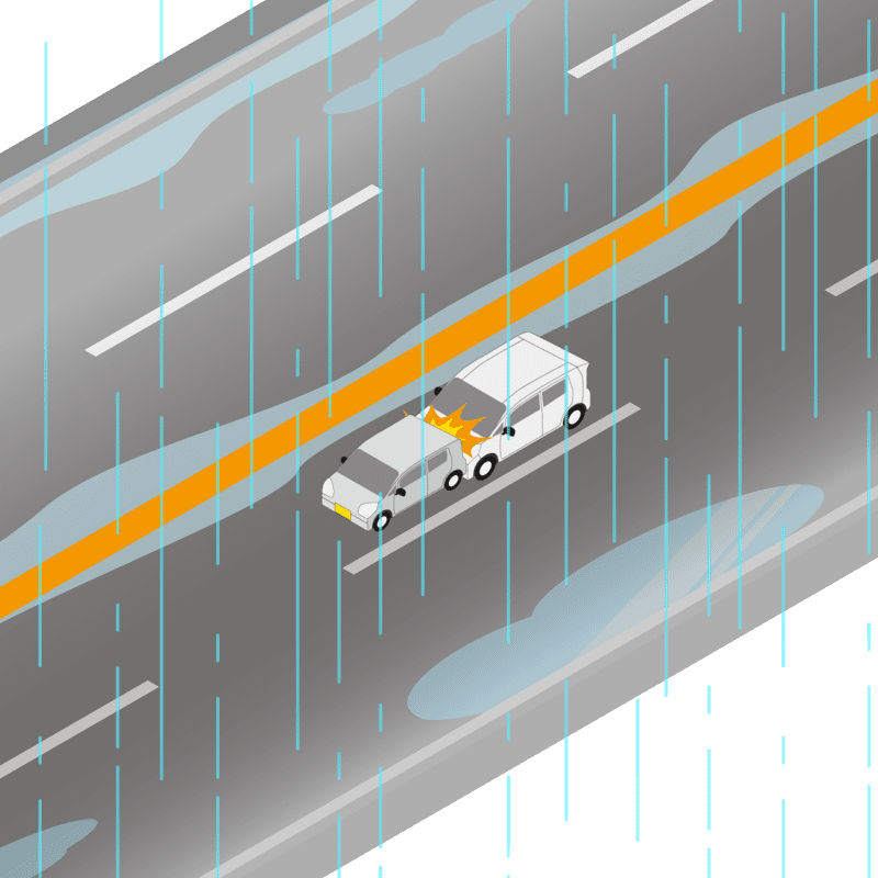 ・イラストに使用している各要素(車、背景、車、天候、信号、衝突地点など)は、代表的なイメージをイラスト化しており、色や形状等含め現実の事故の状況とは異なります。あくまで、事故のイメージとして参考までにご活用ください。