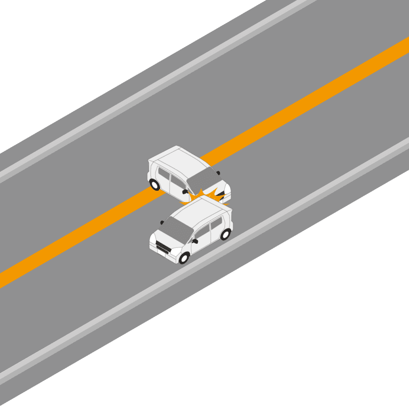 ・イラストに使用している各要素(車、背景、車、天候、信号、衝突地点など)は、代表的なイメージをイラスト化しており、色や形状等含め現実の事故の状況とは異なります。あくまで、事故のイメージとして参考までにご活用ください。