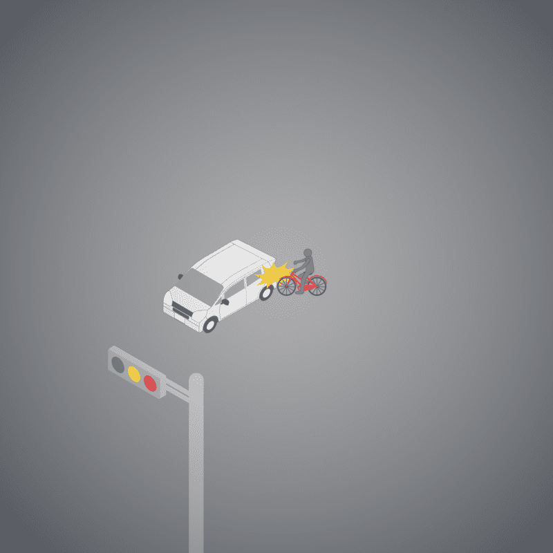 ・イラストに使用している各要素(車、背景、車、天候、信号、衝突地点など)は、代表的なイメージをイラスト化しており、色や形状等含め現実の事故の状況とは異なります。あくまで、事故のイメージとして参考までにご活用ください。