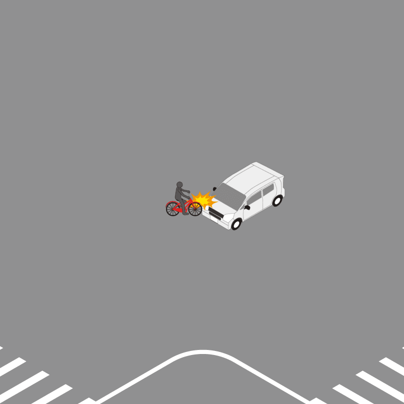 ・イラストに使用している各要素(車、背景、車、天候、信号、衝突地点など)は、代表的なイメージをイラスト化しており、色や形状等含め現実の事故の状況とは異なります。あくまで、事故のイメージとして参考までにご活用ください。