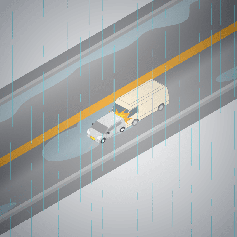 ・イラストに使用している各要素(車、背景、車、天候、信号、衝突地点など)は、代表的なイメージをイラスト化しており、色や形状等含め現実の事故の状況とは異なります。あくまで、事故のイメージとして参考までにご活用ください。
