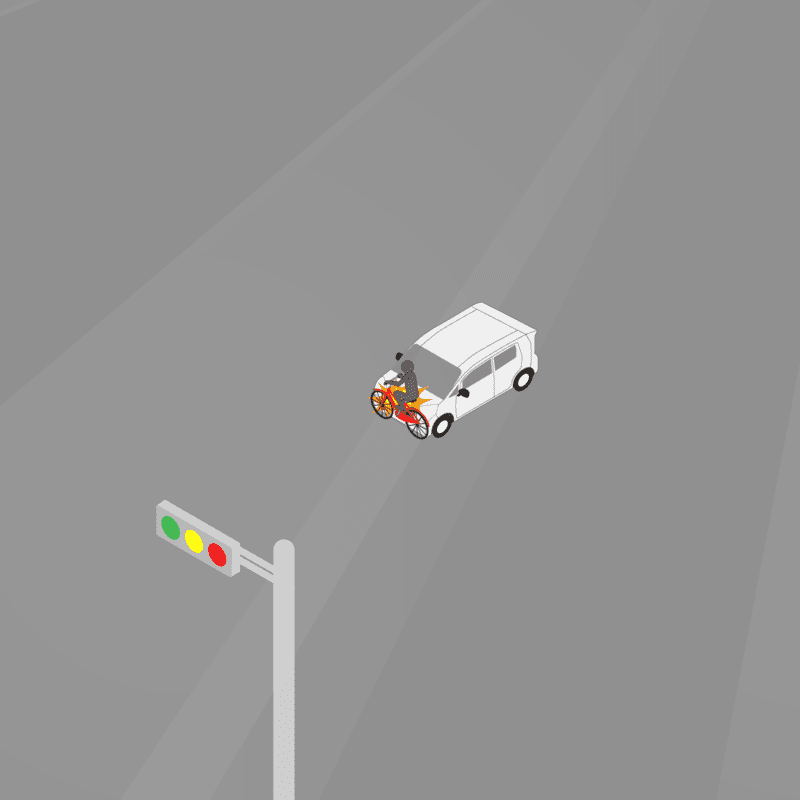 ・イラストに使用している各要素(車、背景、車、天候、信号、衝突地点など)は、代表的なイメージをイラスト化しており、色や形状等含め現実の事故の状況とは異なります。あくまで、事故のイメージとして参考までにご活用ください。
