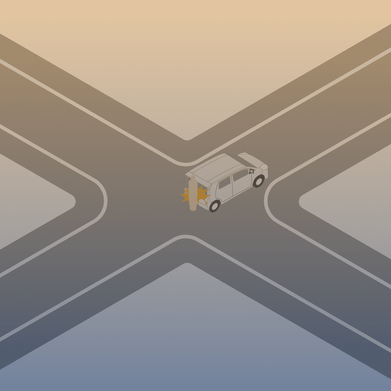 ・イラストに使用している各要素(車、背景、車、天候、信号、衝突地点など)は、代表的なイメージをイラスト化しており、色や形状等含め現実の事故の状況とは異なります。あくまで、事故のイメージとして参考までにご活用ください。