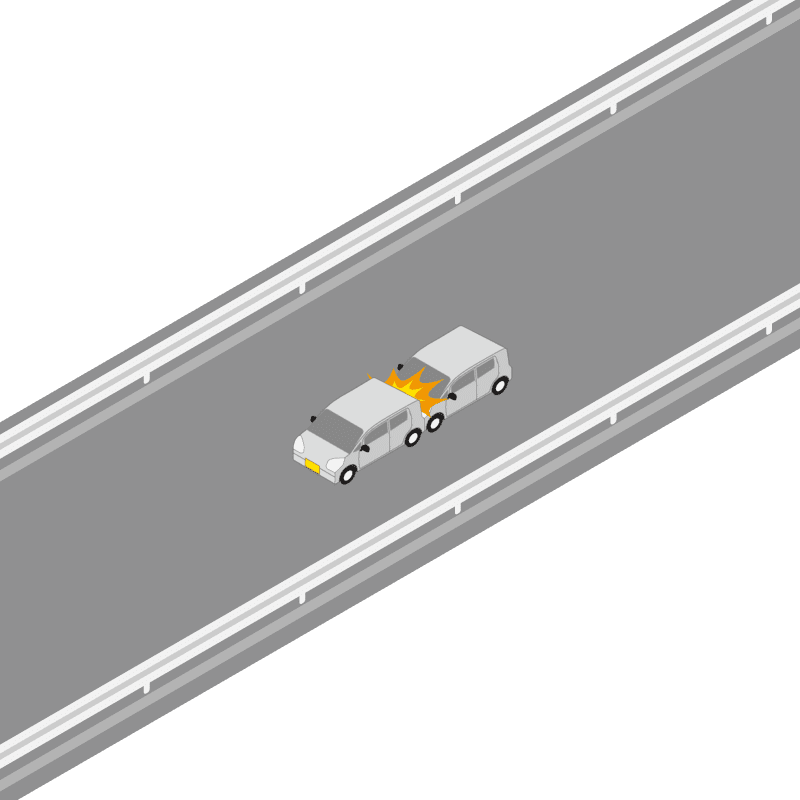 ・イラストに使用している各要素(車、背景、車、天候、信号、衝突地点など)は、代表的なイメージをイラスト化しており、色や形状等含め現実の事故の状況とは異なります。あくまで、事故のイメージとして参考までにご活用ください。