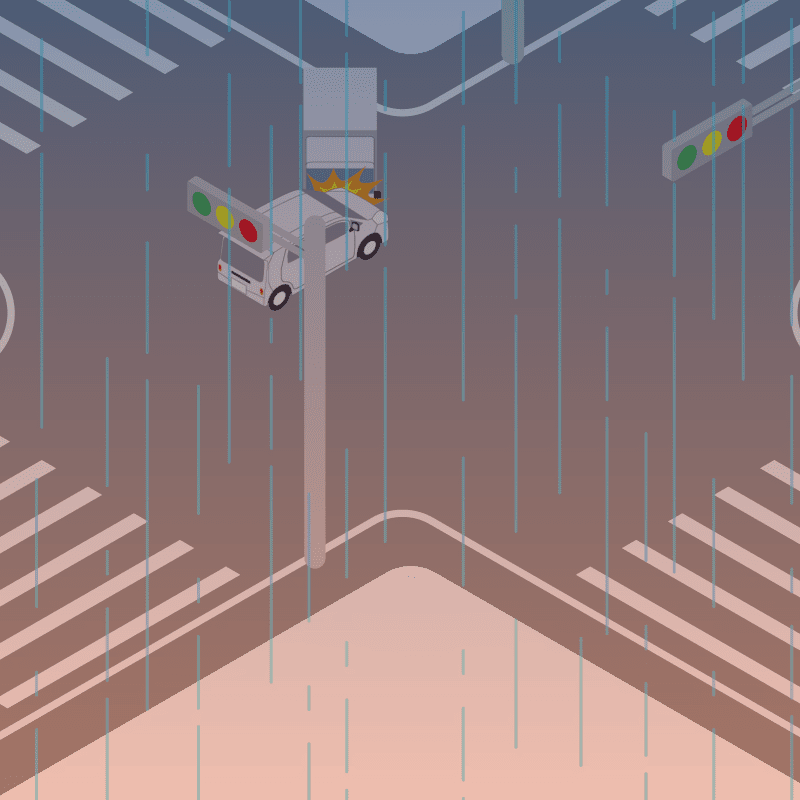 ・イラストに使用している各要素(車、背景、車、天候、信号、衝突地点など)は、代表的なイメージをイラスト化しており、色や形状等含め現実の事故の状況とは異なります。あくまで、事故のイメージとして参考までにご活用ください。