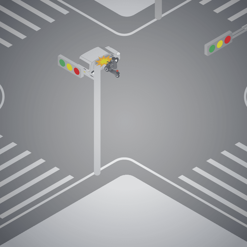 ・イラストに使用している各要素(車、背景、車、天候、信号、衝突地点など)は、代表的なイメージをイラスト化しており、色や形状等含め現実の事故の状況とは異なります。あくまで、事故のイメージとして参考までにご活用ください。